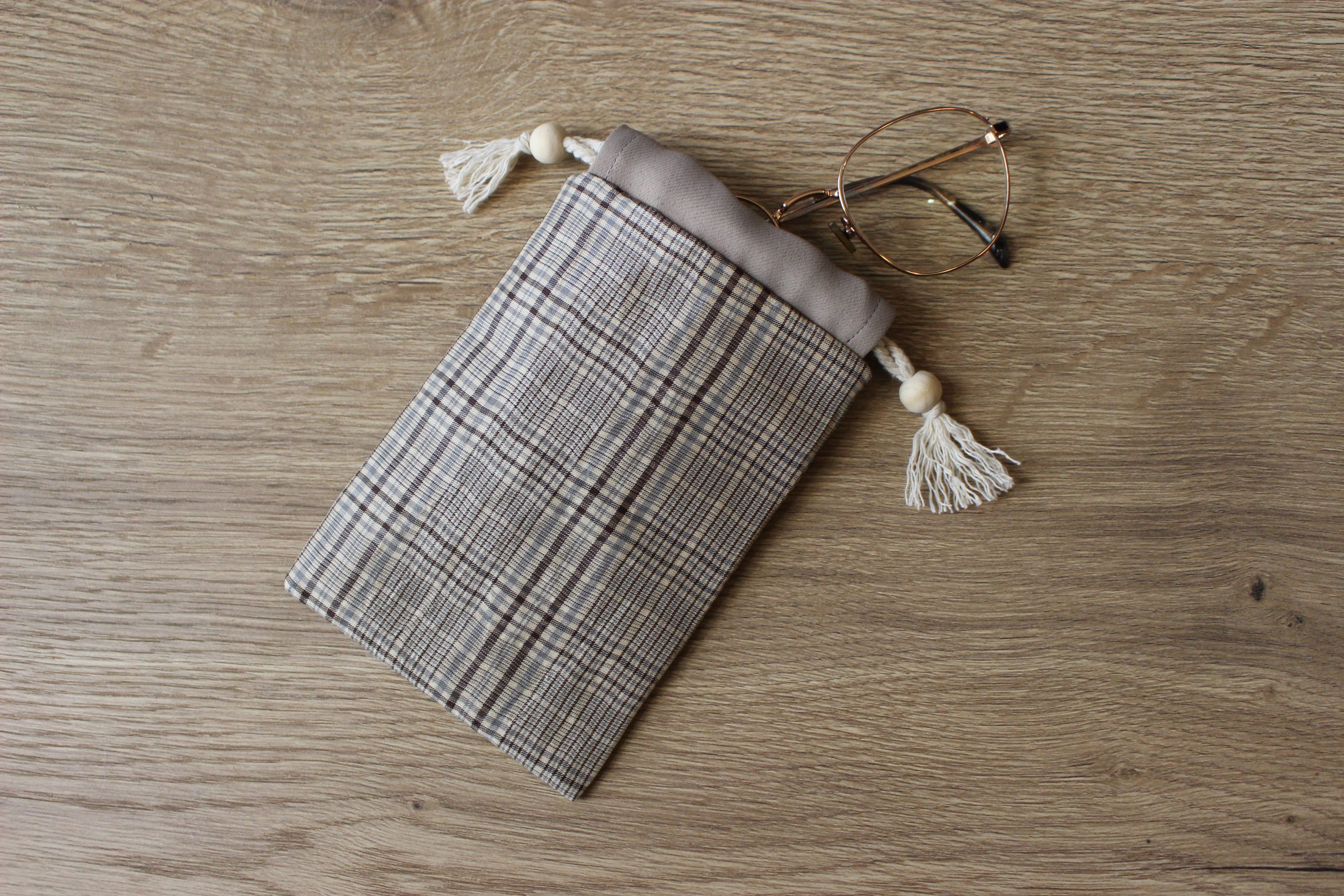 Cet étui à lunettes est à la fois pratique et esthétique. Il se resserre grâce à sa corde en macramé.