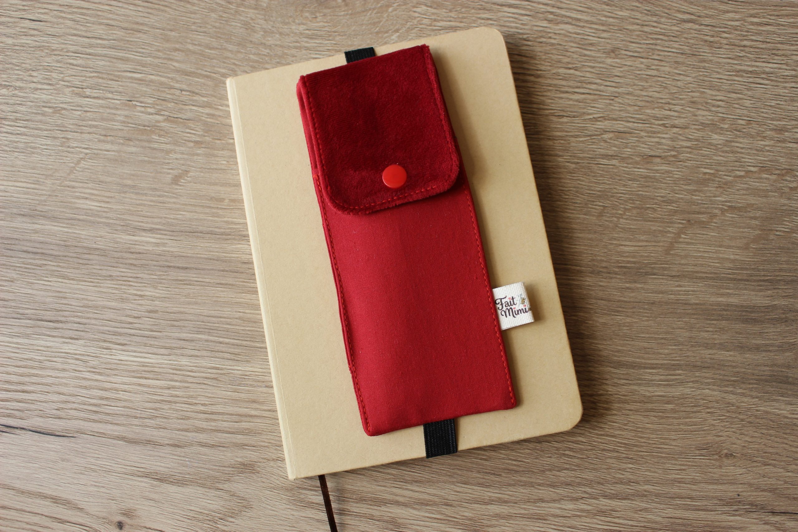 Il s’accroche sur le rabat du carnet grâce à un élastique.